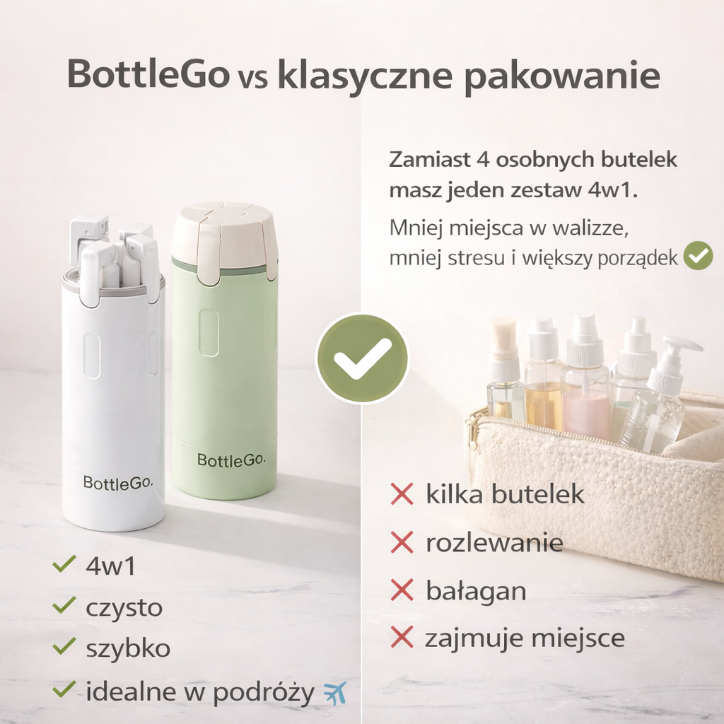 Dlaczego BottleGo™ zastępuje kosmetyczkę