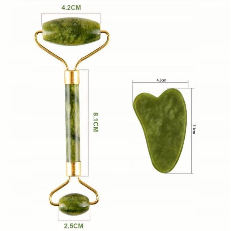 Tak, zarówno roller, jak i płytka gua sha wykonane są z naturalnego jadeitu, który posiada charakterystyczny chłód, wagę i subtelną, niepowtarzalną strukturę kamienia.